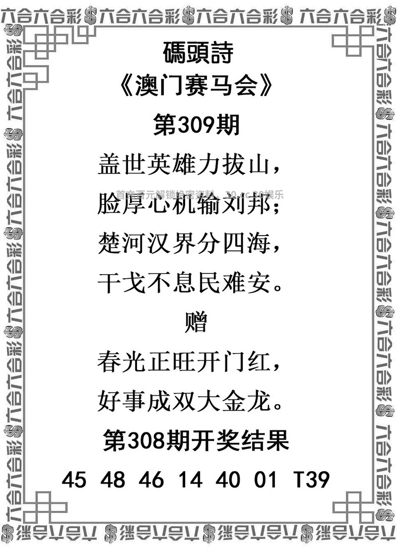 | 308期:🌸大小中特🌸≠大大大≠开兔39中 |